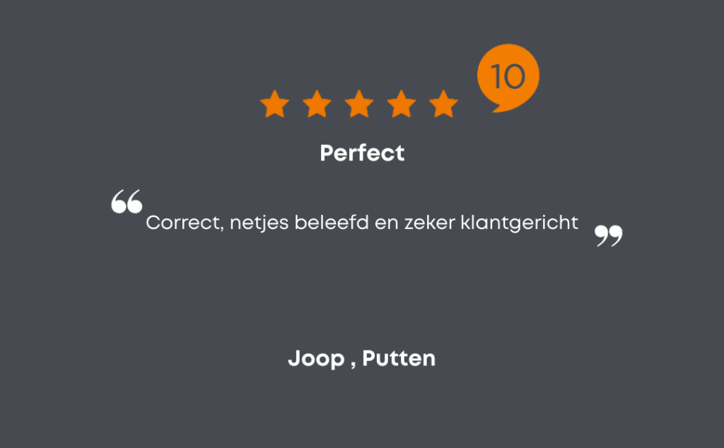 Als je naar onze reviews kijkt, dan zul je zien dat wij er alles aan doen om aan je wensen tegemoet te komen. Laat het ons dus vooral weten als je vragen hebt. Wij staan graag voor je klaar!
