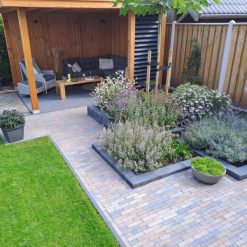 Met deze bestrating accentueert u harde lijnen die een moderne tuin opleveren. Een echt samenspel van ontwerp, materiaal en sfeer. Strakke vormen geven ruimte aan speelsheid met behoud van sfeer. Het beste van twee werelden!Bel naar 0341-352931 voor meer informatie of voor een persoonlijk advies op maat!