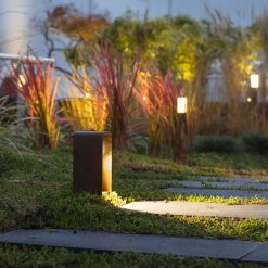 Staand armatuur ACE CORTEN 12V geeft een strijklicht dat geschikt is voor het verlichten van een pad of oprit.