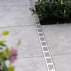 Dit ACO Slimline gootelement 100 cm met aluminium rooster heeft een minimalistische uitstraling die prima past bij de groot formaat terrastegels die erg populair zijn. Het gootelement is onderdeel van de Slimline serie en geeft met zijn smalle vorm de tuin een luxe, chique uitstraling.