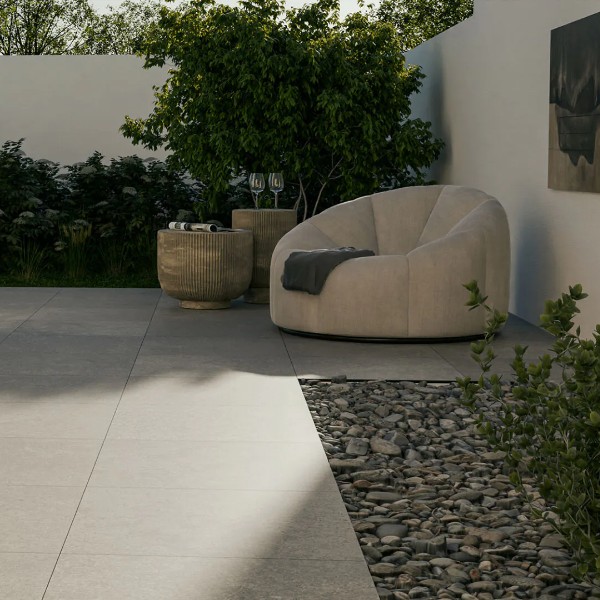 Cerasun 60x60x4 cm Brescia Nebbia; de voordelen van keramiek met hoogwaardige eigenschappen in combinatie met de eenvoudige verwerking van een betontegel.