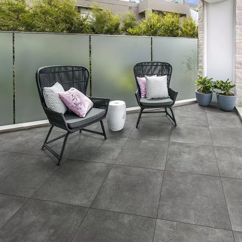 Cerasun 60x60x4 cm Piazza Antracite; de voordelen van keramiek met hoogwaardige eigenschappen in combinatie met de eenvoudige verwerking van een betontegel.