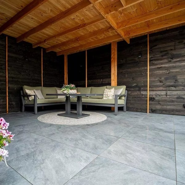Cerasun 80x80x4 cm Bergamo Azzurro; de voordelen van keramiek met hoogwaardige eigenschappen in combinatie met de eenvoudige verwerking van een betontegel.