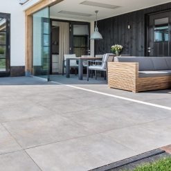 De Keramische Tegel Betonlook 60x60x2 cm Greige: Een prachtige keramische terrastegel van 2 centimeter dik met betonlook en die geschikt is voor verwerking op StabiTop. Invegen met onkruidwerend invoegzand. Niet voegen.