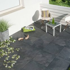 Bekijk de Keramische tegel Recco TRE 60x60x3 cm Antracite in onze showtuin in Ermelo