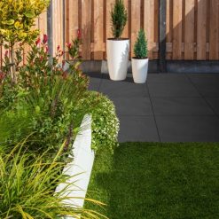 Keramische tegel 60x60x3 cm Lucci Groove in onze showtuin in Ermelo
