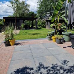 De Design Square 60x60x4 cm Dark Sepia is een mooie en strakke budgettegel van Kijlstra die het prachtig doet in moderne tuinen. De tegel heeft een dichte toplaag, maar is niet geïmpregneerd waardoor deze tuintegel een zeer gunstige prijsstelling heeft.
