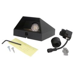 De WEDGE DARK GREY 12V is een vierkant wandarmatuur in donkergrijs gecoat aluminium. Deze wandlamp geeft een indirect gebundeld Warm White licht. Mooi voor het verlichten van de schutting, oprit of terras. Verblindt niet.